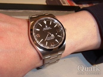 サブマリーナーと迷いましたが、エクスプローラーⅠのシンプルさとデザインが気に入り、着けた感じが良かったので選びました。ネットで見たり何度か来店して検討していましたが、セールと値引きが有ったので決心が付きました。