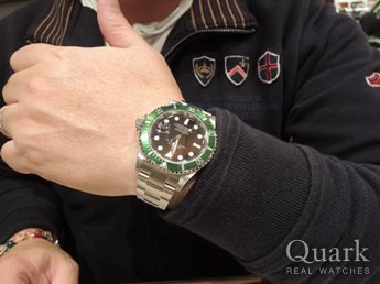 I 様、この度はクォーク梅田店にてご購入頂きまして誠にありがとうございました。GMTマスターIIと悩んでおられましたが、I様のお話を伺っているとグリーンサブにお気持ちが傾いているのがわかりましたし、今後の資産価値の面でもオススメできるモデルです。プライベートはもちろんのことスーツ等にも意外と合うオシャレな1本ですね!何年か先、息子様に受け継いでいかれるということでしたのでグリーンサブをオススメさせて頂きました。シードゥエラーと同じく末永くご使用頂けるお時計だと思います。