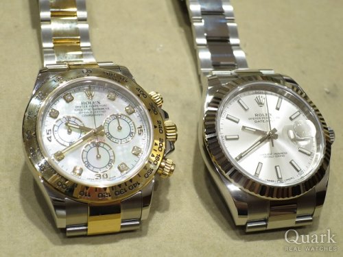 Y様 この度はクォーク梅田店をご利用頂き、誠にありがとうございます。弊社でも入荷の少ない中、Y様にお問い合わせを頂いた日に梅田店に入荷があったデイトナ Ref.116503NG ホワイトシェル。まさに運命的ですね!そして、まさかの一気に2本買い…ご案内した私が一番驚きました。「2本ともください!」と言って頂いた時の衝撃は、今も残っております!しかも来店してすぐにご決断されて、私はただただ驚くばかりでした。Y様がファーストインプレッションでお選び頂きましたRef.116503NGは、マザーオブパールを用いたシェルダイヤルに8個ものダイヤモンドがあしらわれたラグジュアリーダイヤルです。光の当たる角度により様々な色目や輝きを放つシェルダイヤルと上質なダイヤモンドの輝きは、腕元を明るく艶やかに演出してくれる最高の1本です!天然素材故に、同じ柄や光加減は無いオンリーワンの個体であることも魅力です。またY様にご購入頂きましたこちらの個体は、シェルの色味が非常に綺麗でしたので私含め、梅田店スタッフ自信を持ってオススメさせて頂きました!Y様のロレックスライフがよりよいものとなりますよう、しっかりサポートさせて頂きますので、ご愛用されていく中でご不明な点などございましたら何なりとご遠慮無く、ご用命くださいませ。クォーク梅田店をよろしくお願いいたします。 クォーク梅田店 川田