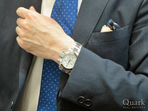 G様 いつもクォーク横浜店をご利用頂き誠にありがとうございます。タイミング良くご案内することが出来ましたRef.116520のホワイトダイヤルは、昨年生産終了になったことにより価値や注目度がこれまで以上に増している、ロレックスの大人気モデルでございます。私から拝見させていただいてもRef.116520のデザインがG様の腕元に大変しっくりきておられましたので、是非日頃よりご愛用いただけましたら幸いです。気になるモデルがございましたら是非またお手伝いさせていただたけたらと思いますので、今後とも末永いお付き合いのほど、宜しくお願い致します。 クォーク横浜店 濵松
