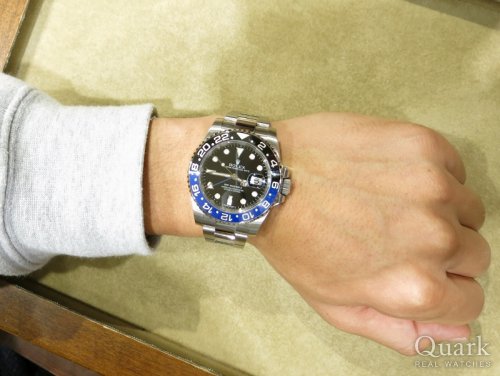 S様 この度は、私共クォーク仙台店をご利用頂き、誠に有難う御座います。ご試着頂きました際の「カッコイイ」という言葉とS様の笑顔が素敵でした。1年程探されたと伺いましたが、GMT-MASTER IIの青黒ベゼルは大変人気が高い為、なかなか入荷の少ないモデルの一つとなっております。これからは、ROLEXのオーナー様として、その魅力を存分にご堪能ください。また、GMTらしい2色ベゼルのRef.116710BLNRはシックな色合いで、プライベートにもビジネスシーンにもお使い頂けますので、是非、様々なシーンでご愛用ください。サイズ調整やメンテナンス等は、クォーク全店で受付可能で御座います。関東方面へお出かけの際には、東京のお店にも立ち寄ってみてください。今後とも、末長いお付き合いの程、どうぞ、宜しくお願い致します。