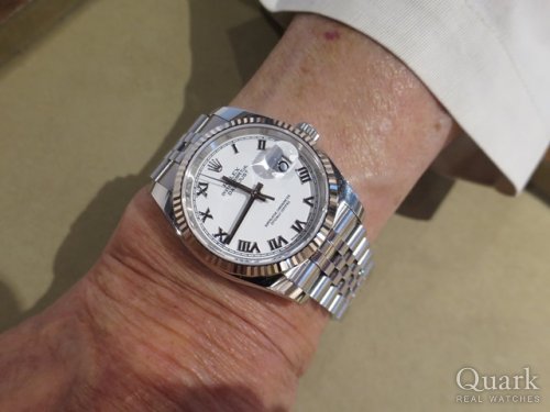 U様、いつもクォーク上野本店をご利用頂き誠に有難うございます。時計好きのU様にデイトジャストRef.116234ホワイトローマをご紹介することが出来、私も嬉しく思っております。白文字盤は上品で爽やかな印象を与えてくれますので、嫌味無くご愛用頂けると存じます。これから末永くご愛用頂ける事を願っております。また時計のことで何かございましたら、私(寺田)までご相談下さいませ。今後とも末永いお付き合いの程宜しくお願い申し上げます。