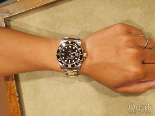 U様 この度はクォーク仙台店をご利用くださいまして誠にありがとうございます。赤シードは素晴らしいモデルでございますが、今回ご購入くださいましたサブマリーナー「Ref.116613LN」も、大変素晴らしいモデルでございます。イエローゴールドの美しい光沢と、引き締まったブラックダイヤルの組み合わせは、U様の焼けた腕元に馴染んでいて、大変お似合いでございました! 是非色々な場面でお時計をお楽しみください。また、今後気になる点等がございましたら、お気軽にお申し付けくださいませ。どうぞよろしくお願いいたします。