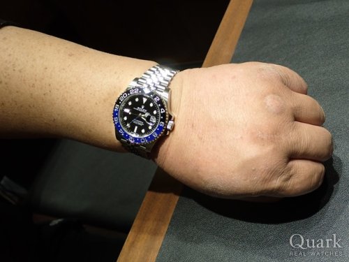 M様 いつもクォーク名古屋駅店をご利用頂き、誠にありがとうございます。GMTの青黒ベゼルは個性的なカラーでありながらも、都会的で洗練された大人のスポーツモデルという印象を受けます。ジュビリーブレスになるとより大人の雰囲気が出ますね。今までM様が所有された時計とも一味違った雰囲気になりますので、新しい気持ちで楽しんで頂ければ幸いです。これからも他のお時計同様、しっかりサポートに努めさせて頂きますので、何か気になる事が御座いましたら、遠慮なくご相談下さい。
