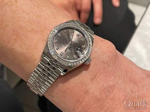 S様 この度はクォークサロン大阪をご利用頂きまして、誠にありがとうございます。お選びいただきましたデイトジャスト28のベゼルダイヤは豪華なダイヤモンドに落ち着いたシルバー色が時計の美しさを際立たせる1本です。S様に大変よくお似合いでした。末永くご愛用頂ければ嬉しく存じます。お近くに来る機会がございましたら、お気軽にお立ち寄りくださいませ。