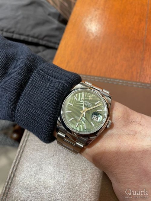 K様 この度はクォ―ク梅田店をご利用頂きまして誠にありがとうございます。エクスプローラーIのコンビモデルと悩まれていましたが、着用した時にグリーンパームモチーフがとても良くお似合いになられていましたのでオススメさせていただきました。また生産期間も短く希少性の高さでも満足頂けると思いますので、末永くご愛用頂ければ嬉しく思います。店頭でも簡単なメンテナンスもサービスで行なっておりますのでいつでもお気軽にお立ち寄り下さいませ。今後ともクォークをどうぞよろしくお願いいたします。