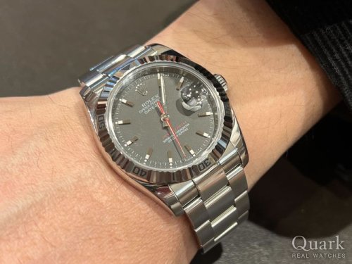 K様、この度はクォーク広島店をご利用いただきまして誠にありがとうございます。またご購入にあたり何度も足を運んでいただいたこと、ご案内までにお時間をいただいたこと重ねてお礼申し上げます。今回ご購入いただきましたRef.116264はスタンダードモデルでありながらも、回転ベゼルがついたスポーティーなデザインが特徴のモデルとなります。2013年に生産終了となってからは年々入荷する機会も少なくなってきており、今回コンディションの良い個体をご案内でき私も嬉しく思います。是非末永くご愛用いただけますと幸いです。今後も大切なお時計をしっかりとサポートさせて頂きますので、何か気になる事が御座いましたら遠慮なくご相談下さい。それでは今後ともロレックス専門店クォーク広島店をよろしくお願い申し上げます。