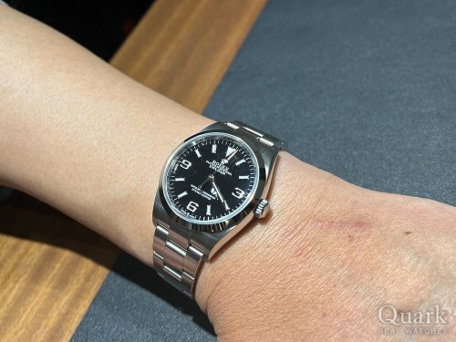 Y様 この度は数ある時計店からクォーク名古屋駅店をご利用いただき誠にありがとうございます。ご購入いただきました『Ref.124270』ブラックダイヤルは2021年に新作発表されたエクスプローラーⅠでございます。基本デザインは、前モデル(Ref.214270) 39mmケース径から36mmに変化し、36mmが復活を遂げた型番でございます。これまでより細くスタイリッシュさが引き立つ黒文字盤となっており、Y様に自慢のお時計になると存じます。また当店でブレス洗浄、タイムチェックも無料で行っておりますので、お近くにお越しの際は遊びにいらしてくださいませ。お使いいただく上で何かご不明な点等ございましたら、また久保までご相談ください。今後とも末永いお付き合いの程よろしくお願いいたします。