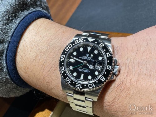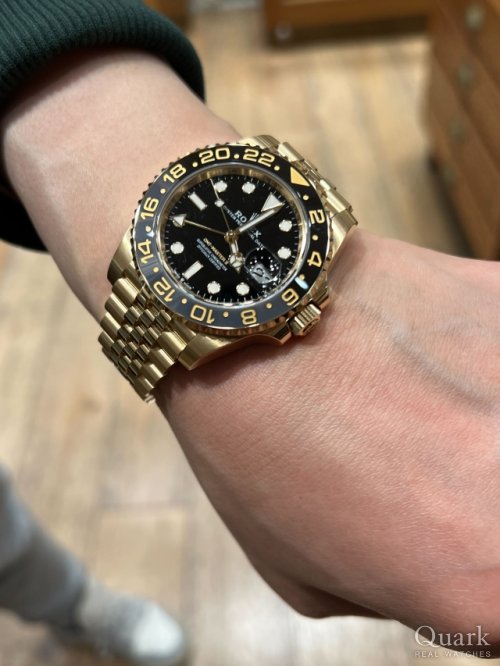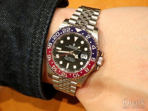 N様、この度はクォーク仙台店をご利用くださいまして誠にありがとうございます。ご購入いただきました『GMT-MASTER II Ref.126710BLRO』は、2018年にステンレス製ケースと赤青カラーセラクロムベゼルの組み合わせで登場したファン待望の1本であり、近年は入荷も少なくなりつつある、まさに躍進の1本です。細かな5連のコマで構成されたジュビリーブレスは、手首に自然に馴染み、長時間の着用でも疲れにくい快適さを有する上、ポリッシュ仕上げのセンターリンクが上品な輝きを放ちますので、ドレッシーな装いにもマッチします。N様のモチベーションを高め、腕元に彩りを添える最高の1本かと存じますので、末永くご愛用いただけますと幸いです。今後ともご用命を賜りますようお願い申し上げます。