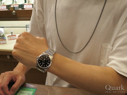 Y様、この度はクォーク神戸店をご利用頂きまして誠に有難うございました。心より感謝申し上げます。今回ご購入頂きましたエアキングRef.116900は、2016年にデザインを一新して復活して以来、その斬新なデザインとサイズアップしたケースが魅力で、コアなファンを唸らせるモデルです。程よい遊び心を感じさせるデザインが最大の魅力ですが、嫌味な派手さは全くありませんのでON・OFF問わずガンガンお使い頂けます!!またY様のおっしゃる通りで、お持ちの方がまだ少なく周りとかぶらない点も良いですよね!Y様にとてもお似合いでしたので私も推させて頂きました!!末永くご愛用頂き、デイトナ(アイスブルー)との使い分けをお楽しみ頂けましたら幸いです。今後もご指名頂けるようしっかりとサポートさせて頂きますので、何かご要望などございましたら私井内までお申し付け下さいませ。また、ブレスレットの洗浄及び調整も無料で行っておりますので、お近くに来られた際には是非遊びにいらして下さい。心よりお待ちしております。 クォーク神戸店 井内