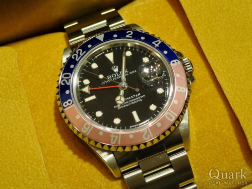 O様、いつもクォーク梅田店をご利用頂きまして誠に有難うございます。今回お選び頂いたGMT-MASTER II Ref.116713LNはパイロットウォッチならではのベゼルデザインやGMT針が特徴的で、イエローゴールドとブラックダイヤルの組み合わせが更なる高級感を演出していますね。ボリュームのある男らしいシルエットがO様にとてもよくお似合いでした。今後ともO様にご満足頂けるよう努めて参りますので、末永いお付き合いの程宜しくお願い致します。またのご来店を心よりお待ちしております。