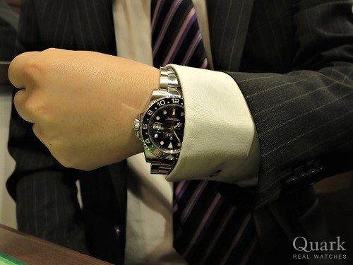 サブマリーナーデイトと悩みましたが、仕事柄、GMT機能は実用的であるため、GMTマスターIIにしました。色々な服装で使えそうなのでこれからが楽しみです!