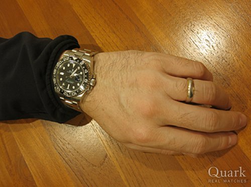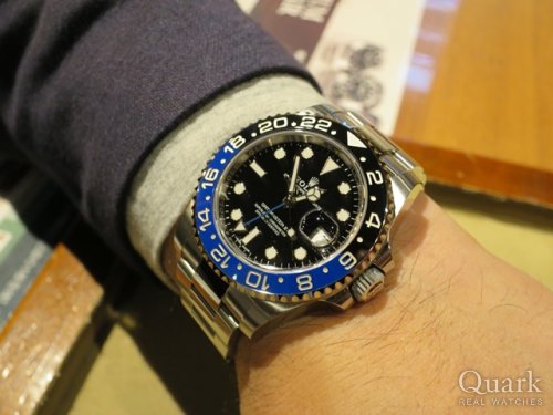 GMTマスターIIとサブマリーナーで悩んでいましたがGMTマスターIIの黒青ベゼルを見てコレに決めました!存在感も高級感もあって非常に気に入りました!