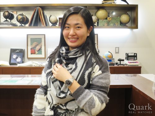 今回は子供の入園や入学式などが重なっていたので、以前から検討していたDATE JUSTの購入を決めました。HPを拝見させて頂きダークグレーの落ち着いた色合いに惹かれたのですが、お店で実物を拝見してみたら同色のダイヤ付きの文字盤と悩んだ末に普段使いの事を考えてローマ数字の文字盤に決めました。