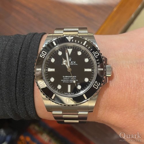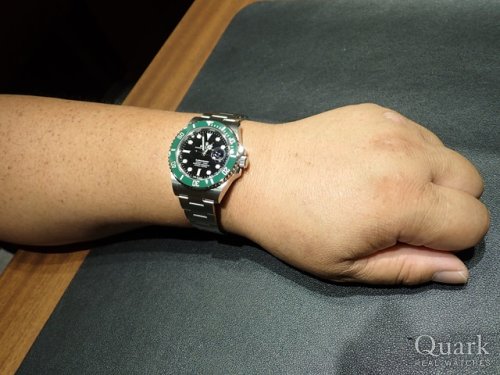 M様 いつもクォーク名古屋駅店をご利用頂き、誠にありがとうございます。鮮やかなグリーンベゼルと引き締まった黒文字盤のバランスが良く、新作発表当時から人気の高いモデルとなっております。逞しいM様の腕にとても良くお似合いでした。念願のグリーンサブマリーナーになりますので、きっと愛着も湧くと思います。大切なお時計をしっかりサポートさせて頂きますので、何か気になる事が御座いましたら、遠慮なくご相談下さい。