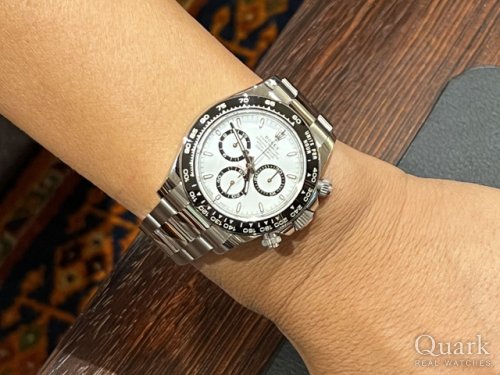 以前に黒文字盤のデイトナを購入しましたが、今回は白文字盤も欲しくなり購入を決めました。デイトナはやはり最高です。
