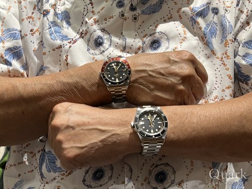 A様 いつもクォーク静岡店をご愛顧いただき有難うございます。今回はチューダーをペアでご購入いただいたA様。いろいろ悩まれながら検討いただきましたが、オールドライクな雰囲気が感じられる2本をお選びいただきました。2024年新作モデルのブラックベイ 58 GMT(Ref.7939G1A0NRU-0001)とヘリテージ ブラックベイ(Ref.79230N-0009)になります。ブラックベイ 58 GMT(Ref.7939G1A0NRU-0001)は今までにないブラックとバーガンディの組み合わせ。非常にお洒落な1本です。ヘリテージ ブラックベイ(Ref.79230N-0009)は男心擽るダーバーズデザインが魅力の時計となります。是非比較してお楽しみいただけると幸いです。それではA様、今後とも末永いお付き合いの程、よろしくお願いいたします。また遊びにいらしていただけると嬉しいです。