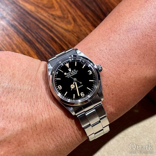 K様、いつも私どもクォーク仙台店をご利用いただきまして誠にありがとうございます。この度お求めいただきました『EXPLORER I Ref.114270』は、伝統の36mm径ケースと中空ブレスの組み合わせを採用した最後の型番となる1本です。約100グラムの重量で、ロレックスのスポーツモデルの中でも比較的軽量であるため、普段使いし易く、シンプルで視認性の高いデザインから着用シーンを選ばずに永く活躍してくれます。是非ご愛用いただけますと幸いです。今後ともしっかりとサポートさせていただきますので、お時計の事で何かございましたら、お気軽にご相談下さいませ。末永いお付き合いの程、よろしくお願い申し上げます。