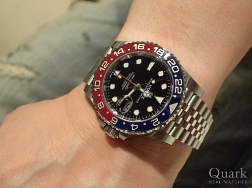H様 いつも弊社をご利用頂きまして誠に有難うございます。即決でお選びいただいたGMTマスターIIのジュビリ―ブレスレッドがH様の腕に抜群にフィットしており大変お似合いでございます。コレクションのブレスレット洗浄等また近くにお越しの際にお時間ございましたらお立ち寄り下さいませ。今後共クォークサロン大阪を宜しくお願い申し上げます。 クォークサロン大阪 羽場
