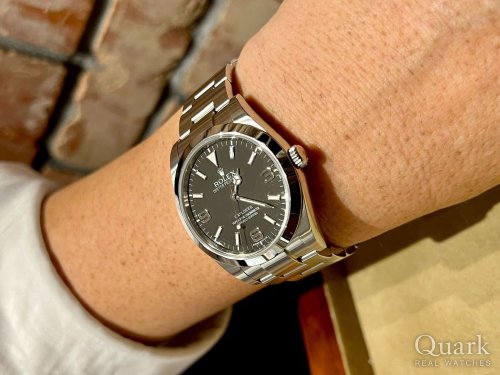 S様 この度はクォーク静岡店をご利用いただき誠にありがとうございます。15年越しのエクスプローラーI、本当におめでとうございます!!さまざまな時計を楽しまれてきたからこそ、ココにたどり着く、シンプルなデザインは文句なしのカッコ良さです。ブラックアウトの引き締まったフェイスも現行モデルは違う魅力がございますね。お仕事でもプライベートでも場所を選ばず活躍してくれるモデルなので、いつも以上に腕まくりしてどうぞ思う存分自慢してください(笑)。そして、この日までの濃厚なストーリーに負けないくらい、今度はエクスプローラーIと共に素敵な思い出をたくさん増やしてください。店頭にてサイズ調整、ブレス洗浄を無料で承っておりますので、またお店にも遊びにきてください。それでは今後とも末永いお付き合いのほど宜しくお願い申し上げます。