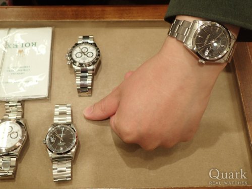 3年前にクォークさんでDAYTONAの白文字盤を、今回は旧型のDAYTONA(Ref.116520)黒文字盤を購入しました。今後値段が高騰して購入し難くなる前に新品の旧型DAYTONAを欲しかったのと、以前に購入した際の通販での対応が良かったので、今度は直接お店に伺いました。未だに旧型DAYTONA(Ref.116520)の新品を取り扱っているお店様が少ないのもクォークさんを選んだ理由です。