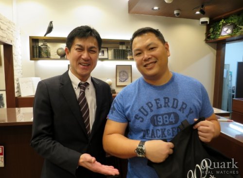 H様 この度は弊社をご利用頂き誠にありがとうございます。お選び頂いたモデルは一味違った高級感を存分に堪能できますので人と被らず末永くご愛用頂けること間違い無しの一本ですね。H様の腕に抜群にフィットしており大変お似合いでございます。ブレスレット洗浄等また近くにお越しの際にお時間ございましたらお立ち寄り下さいませ。今後共クォーク梅田店を宜しくお願い申し上げます。 クォーク梅田店 羽場