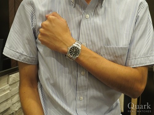 T様 この度はクォーク名古屋店をご利用頂き、誠にありがとう御座います。ご来店時は店内が混み合っており、お時間を頂いてしまいました。2016年に復活を遂げたエアキングは、今までデザインとは一変し、イエローのクラウンマークを採用する等、斬新なデザインで注目を集めております。シンプルながらも遊び心のある色使いが魅力的ですね。サイズも従来の34mmから40mmへと変更になり、腕元の存在感も抜群です。また現在社会に最適な耐磁性に特化した機能を備える為、T様にとってはお仕事においても心強い御時計となりますね。これから末永くご愛用下さいませ。今後も御時計のご相談が御座いましたら、お気軽に私までお申し付け下さいませ。お近くにお立ち寄りの際は、お気軽に遊びにいらして下さい。またT様にお会い出来る日を楽しみにしております。
