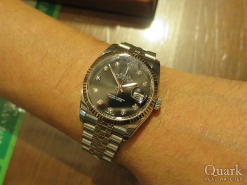 フラッと立ち寄らせて頂いたクォークさんに気に入った時計を見つけることができ、一番は妻の「似合っている」の言葉に後押しされ購入を決めました。 保証付きで購入したのでアフターフォローなど宜しく!