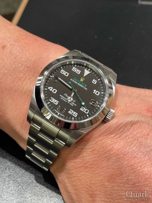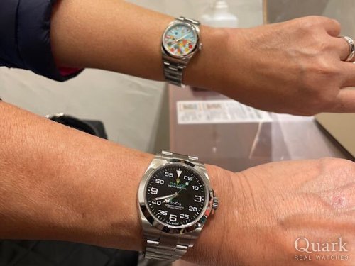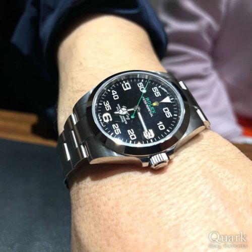 N様 いつもクォーク上野本店をご利用いただき誠にありがとうございます。ご購入いただきましたRef.126900は2022年に発売が開始された新型のAIR-KINGでございます。『AIR-KING』では初となるリューズガードの採用に加え、ダブルロックも素敵ですね!他のモデルにはない個性的な文字盤もロレックスの遊び心があって良いですね!ブレスレットの洗浄及び調整も無料で行っておりますので、お近くにお越しの際は遊びにいらしてくださいませ。お使いいただく上で何かご不明な点等ございましたら、また林までご相談ください。今後とも末永いお付き合いの程よろしくお願いいたします。
