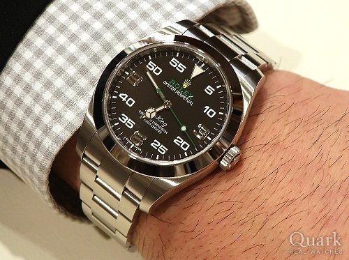 S様 この度は、私共クォークをご利用頂き、誠に有難う御座いました。これまでご愛用頂いておりましたGMTもステキなモデルでしたが、この度お求め頂きましたエアキングは、あまり目にする事のない文字盤が魅力的な1本ですね。定番のカラーにはない、特別感を感じながらご愛用頂けるのではないかと思います。また、日付の無いシンプルな操作や、小ぶりでさりげないサイズ、軽さ等も含めて使い易さはアップすると思いますので、是非、色々なシーンで大活躍させてください。末永くご愛用頂き、S様自慢の1本となりましたら嬉しく思います。これからご使用頂く中で、ご不明な点やサイズのお直し等が御座いましたら、お気軽にご連絡ください。また、近くにお越しの際には、是非、当店へもお立ち寄りください。S様のご来店を心よりお待ちしております。この度は、誠に有難う御座いました。今後とも、どうぞ、よろしくお願いいたします。 クォーク仙台店 麻生