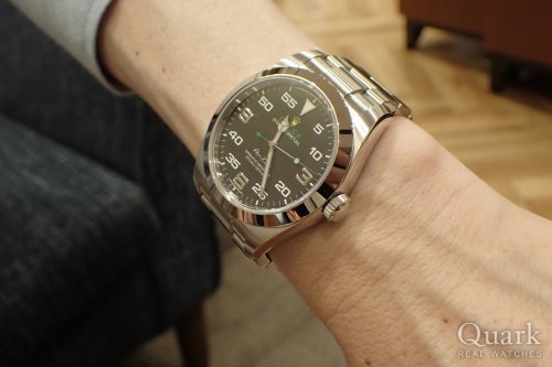 I様 いつもクォーク名古屋店を御利用頂き、誠にありがとうございます。旧型に比べて個性的なデザインに生まれ変わったエアキングは腕元を個性的に演出してくれると思います。今までお求め頂いたロレックスとは一味違う雰囲気になりますので、新しい気持ちでご使用頂ければ幸いです。今まで同様、しっかりサポートに努めさせて頂きますので、何か気になる事が御座いましたら、遠慮なく御相談下さい。