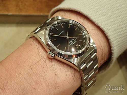 小ぶりなサイズの時計が欲しくて、34㎜のAIR-KINGを選びました。Ref.14010を初めて見た時に「パッ」と一目惚れ!ベゼル、サイズ感に惹かれました。