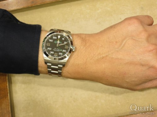 今まで使用していたGMT-MASTER IIが少し奇抜でもう少し使い易い時計を探していました。たまたまAir-Kingがお店にあり、デザインも気に入ったので購入を決めました。