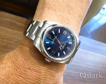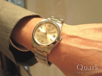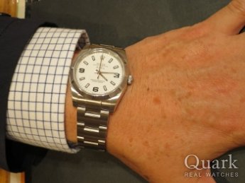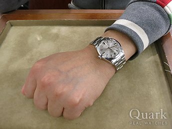 K様、この度はクォーク仙台店をご利用頂き、誠にありがとうございます。結婚22周年の記念品ということで、お選び頂きましたエアキングシルバー369は、記念品に相応しい高級感と、シルバーながらほんのりベージュがかった優しい色合いが、とても素敵なモデルでございます。文字盤の色合いは、明るさや角度によって微妙に変化しますので、様々なシーンでお使い頂ければ、その魅力をさらに感じて頂けることと存じます。末長く使って頂けるお時計でございますので、33周年、44周年、さらにその先の記念日にも腕元でお使い頂ければ幸いでございます。お時計に関しまして、何かご不明な点がございましたら、いつでもお気軽にお申し付けくださいませ。今後とも、何卒宜しくお願い申し上げます。 クォーク仙台店 武田