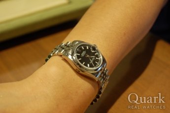 結婚記念として彼からプレゼントしてもらいました。ローマ英数字とレール式のメモリが気に入り一目惚れ!!レディースサイズよりボーイズサイズが私には合うと、あえてこちらにしました。一生大切にします。