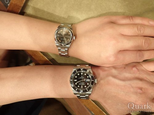 O様 いつもクォーク仙台店をご利用くださいまして誠にありがとうございます。いろいろな想いが込められた今回のお買い物、お手伝いでき、大変光栄でございます。まだ入荷少ないダイヤルでございますので、自慢の一本になること間違いナシですね!今回のお買い物についてお伺いさせていただいた際、おふたりのラブラブなアイコンタクトにそれ以上言葉がでてきませんでしたが・・・いろいろとおめでとうございます(笑)。ペアロレックス、羨ましい限りでございます。機械式時計はお使いいただく内に愛着がどんどん深まる方も多いです。O様もその中のおひとりになるかもしれませんね♪O様のロレックスライフがいつまでも素敵なお時間となりますよう、これからもしっかりお手伝いさせていただきますので、気になることなどございましたらどんな小さなことでも構いませんのでいつでも高橋までお申し付けくださいませ。一番近くに最高のロレックスオーナー様がいらっしゃいますので、私の出番はず~っとないかもしれませんが・・・(笑)。これからおふたりの時間を刻んでくれる良き相棒として、いつまでもご愛用いただけましたら幸いでございます。店頭にてブレス洗浄、サイズ調整を無料で承っておりますので、お近くにお越しの際はまたお店にも遊びにきてください。それでは引き続き末永いお付き合いのほどよろしくお願い申し上げます。