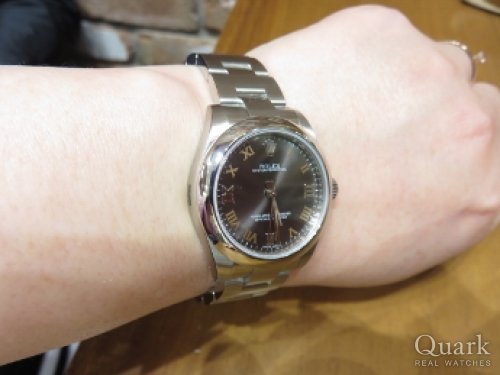 T様 この度は、クォーク神戸店をご利用頂き誠に有難う御座います。そして、ご結婚10周年おめでとうございます。お選び頂いたオイスターパーペチュアルは、存在感のあるボーイズサイズです。視認性に優れており時間も見やすいので、実用性もございます。珍しいダークグレーローマ文字盤は、人とかぶることも少ないので良いですね。T様に大変良くお似合いでしたので、末永くご愛用下さいませ。ブレスレットの無料洗浄や磁気抜きサービスも行っておりますので、お気軽にお申し付け下さいませ。今後ともクォーク神戸店を何卒宜しくお願い申し上げます。クォーク神戸店 増田
