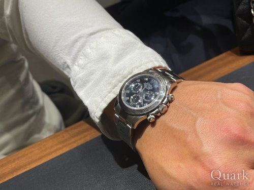N様、この度はクォーク京都店をご利用いただき誠に有難うございます。こだわられていた購入日はN様から理由を話していただき非常に納得する内容で、時計の購入のきっかけにはピッタリだと感じておりました。その記念すべき日に憧れのデイトナを入手するお手伝いができて大変嬉しく思っております。末永くご愛用くださいませ。また何かご不明な点等ございましたらお気軽にご相談くださいませ。今後ともよろしくお願いいたします。 クォーク京都店 山﨑