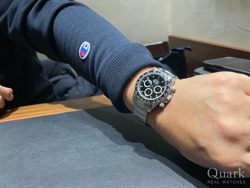 今回ご購入いただいたDAYTONA Ref.126500LNは、デザインがかっこいいのはもちろん、高い知名度、ステータス性を兼ね備えたモデルです。前作モデルのRef.116500LNと迷われておりましたが、似ているようで大きく異なる為、実際に見比べた上でご案内させていただきました。ケース径も40mmと使いやすいサイズ感の為、ご活躍の場は多いかと存じます。年末年始はぜひ新たな相棒を添えて、たくさん思い出をお作りください。今後とも末永いお付き合いの程、よろしくお願いいたします。