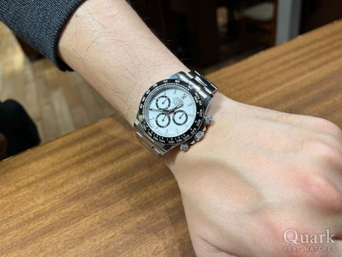 N様 この度は数ある時計店の中からクォーク上野本店をご利用いただき誠にありがとうございます。念願のDAYTONA Ref.116500LN(白)のご購入おめでとうございます!紫外線や耐磁性にも強いセラミックに加え、落ち着いた印象を与えてくれる白色の文字盤が良いですね!2023年に惜しまれながらも生産が終了となってしまいましたが多くのロレックスファンに愛されている素敵なお時計となりますので大切にご使用いただけますと幸いです。ブレスレットの洗浄及び調整も無料で行っておりますので、お近くにお越しの際は遊びにいらしてくださいませ。お使いいただく上で何かご不明な点等ございましたら、また林までご相談ください。今後とも末永いお付き合いの程よろしくお願いいたします。