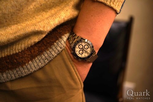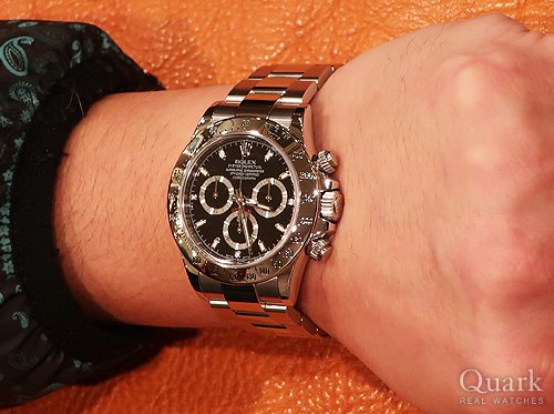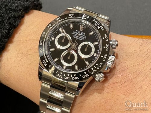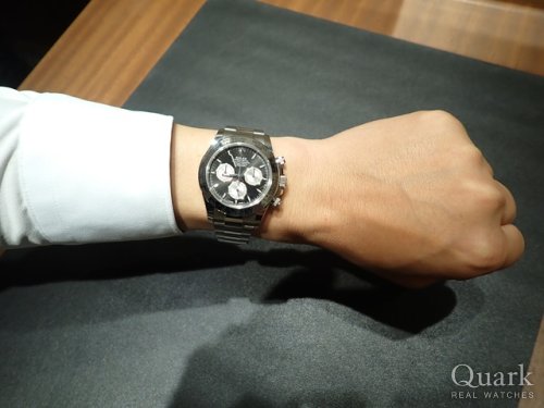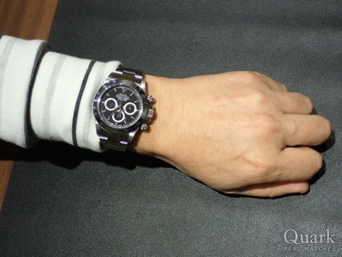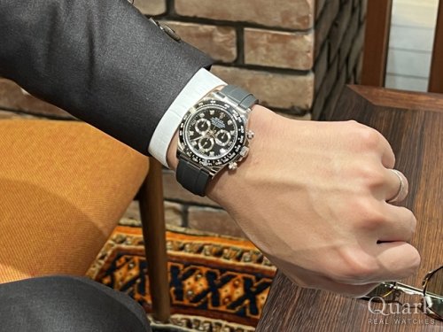 DAYTONA REF.116520(黒)は2000年~2016年製造期間の中で、最終年式となる資産価値面でも最高と言える、最も憧れる一本となっております。タイミング良くご案内出来、大変嬉しく思います。ステンレスベゼルは高級感抜群ですね、お洒落なY様に大変お似合いの一本でございます。写真から格好良さが溢れてきています!