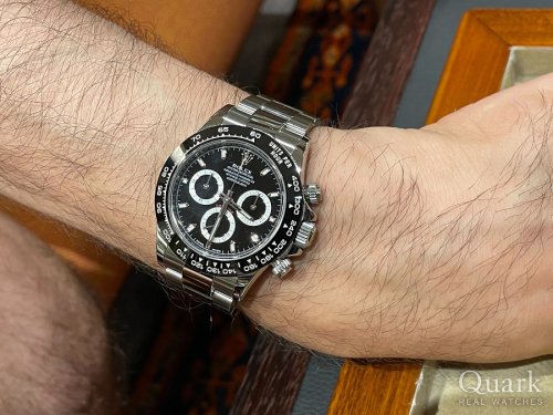 SUBMARINERのコンビモデルを数年前に購入した時から次回はDAYTONAと決めていました。DAYTONAのコンビモデルで8Pダイヤが入った黒文字盤とも迷いましたが、使い勝手と人気を考えるとSS素材のDAYTONAにしました。今度購入するモデルはパテックのノーチラスと決めています。