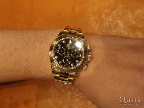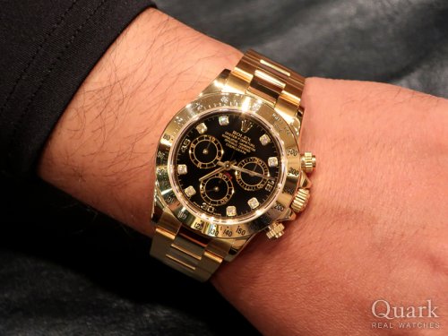 ウブロの金無垢を検討していたが、デイトナコンピが目につき、店長さんにも第三者の立場でアドバイスを頂き購入に至る。素敵な1本に出会えました。
