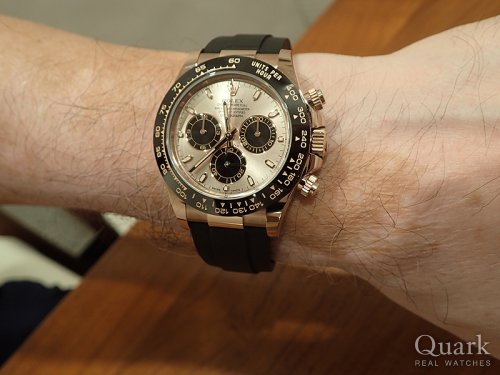 高級感と実用性のバランスが取れたデイトナでずっと探していました。素材とダイヤルカラーで悩みましたが、落ち着きのあるエバーローズゴールドとサンダスト文字盤に落ち着きました。