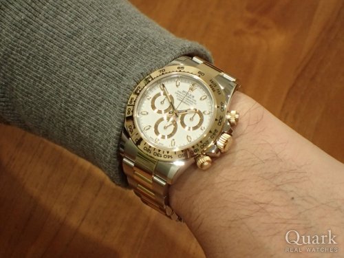 ゴールドとホワイトダイヤルのコントラストが美しく、且つ赤いデイトナ表記はホワイトダイヤルに合うと思ったので購入を決めました。また対応も良かったです。
