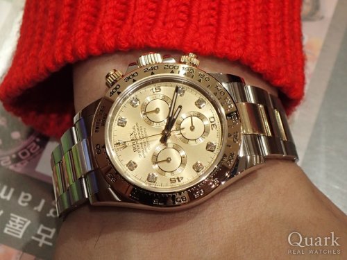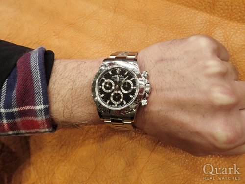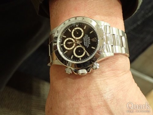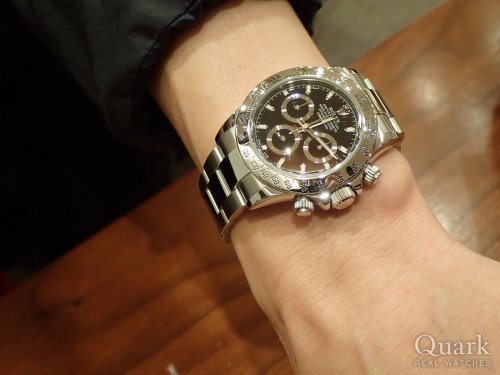 H様、この度はクォーク梅田店をご利用頂きまして誠に有難うございました。今回ご購入頂きましたのは、現行のSSデイトナ Ref.116500LN(ブラック)です。黒を基調としたシックなデザインで、どのようなお召し物にもフィットする万能性に加え、資産としてもますます楽しみな間違いのない1本です。これで両色そろい踏みですね。私個人と致しましても、とてもうれしく思います!!そして背景の2本、、、、実にやばいですね(笑)本当にお持ちのラインナップを想像するだけで冷や汗ものです(笑)バリエーションにとんだコレクションの数々はどれも素晴らしく、喉から手が出るほどに欲しいお品ばかりです。今回のデイトナもとても素敵でしたので、末永くご愛用頂けましたら幸いです。H様には本年もただならぬご贔屓にあずかり、感謝の気持ちでいっぱいでございます。改めまして、心より深くお礼申し上げます。来年度もH様のお力になれるよう精一杯努めて参りますので、何卒宜しくお願い申し上げます。また新年を迎え、H様にお会いできる日を楽しみにしております!! クォーク梅田店 井内