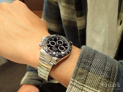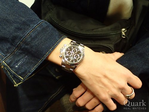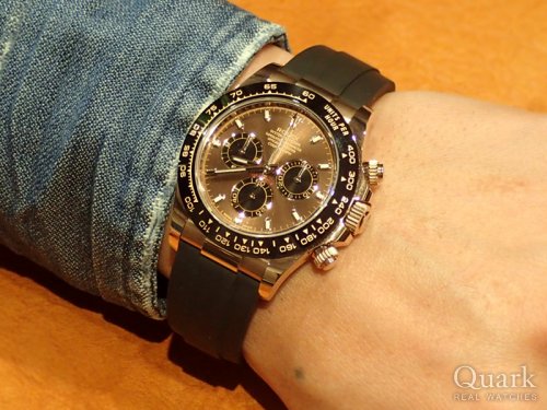 M様、この度はクォーク仙台店をご利用頂きまして誠にありがとうございます。今回、M様がお選びになられたモデルは、艶やかな18Kエバーローズゴールド素材を使用した、スポーツモデル最高峰デイトナの「Ref.116515LN」でございます。高級感あるケースに対して、スポーティーなオイスターフレックスを施した、全体的にバランスのとれたモデルです。ダイヤルは、デイトナ×オイスターフレックスの中で1番人気と申しても過言ではない「チョコレートブラウン・インダイヤルブラック」でございます。これからの軽装になり腕元が露わになる時期、周りの視線を集めることは間違いなしでございます!末長くご愛用頂けたら幸いでございます。