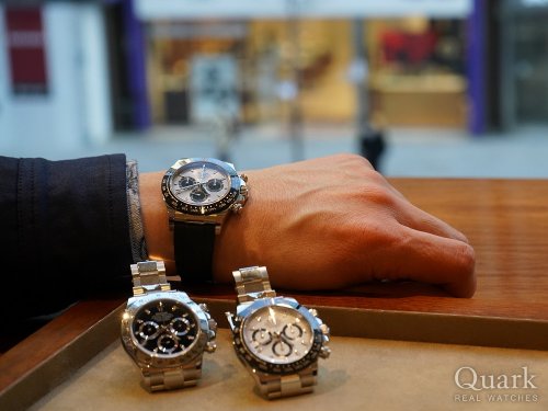 M様、この度もクォーク ラボ中野店をご利用頂きまして誠にありがとうございます。今回はご購入頂くまでに色々ありましたが、お二人で着用されているお姿を見ると全てが良かったなぁと、とても印象深く私の心にに残る時間であったと改めて感じています。ロレックススポーツモデル最高峰のデイトナRef.116520の白文字盤は高級感とエレガントさを併せ持つ誰もが憧れるモデルです。末永くご愛用頂きたく思っております。3月より私は部門職に異動となる為、今までのように店頭ではなかなかお会いできなくなりますが、何か御座いましたらお気軽にご連絡をお願い致します。この中野ブロードウェイに新店舗として開店した際は、クォークを目当てにご来店頂けるお客様がほとんどいない状況の時にM様とT様がラボ中野店にご来店頂いた時は涙が出るほど嬉しかった事を昨日の事のように覚えています。約2年の間に時計を交えてお互いの近況やお仕事のお話をさせて頂けた時間がとても楽しかったです!些細な事や気になる事が御座いましたら、お気軽にご連絡をお願いします。
