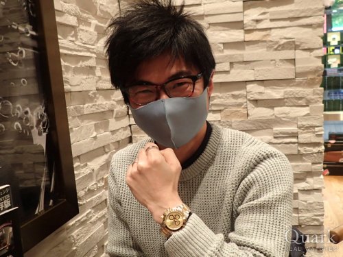 K様、この度はクォーク神戸店をご利用頂きまして誠に有難うございました。日頃よりご贔屓下さり心より感謝を申し上げます。今回ご購入頂きました Ref.116505(茶黒目)は、2008年から生産されているオールPG仕様のデイトナです。こちらの色目は2019年からの新色で、発売当初から大人気です。全体の配色バランスが絶妙で、上品さとカッコ良さを兼ね備えた最高のモデルです。K様のお召し物や雰囲気にもマッチされていて、とてもお似合いでございました。末永くご愛用頂けましたら幸いです。今後もご指名頂けますようしっかりとサポートをさせて頂きます。何かご要望などございましたら、私井内までお気軽にお申し付けくださいませ。また、ブレスレットの洗浄及び調整も無料で行っておりますので、お近くに来られた際には是非共遊びにいらして下さい。心よりお待ち致しております。 クォーク神戸店 井内