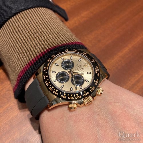 M様 この度はクォーク神戸店をご利用くださいまして、誠にありがとうございます。ロレックススポーツの中でも最高峰のデイトナ ホワイトゴールドモデル!重量感のあるモデルですが、着け心地はいかがでしょうか?お選びくださいましたシルバーアラビア文字盤は、シルバーに赤色の針が映え、高級感だけでなく、スポーティさも兼ね備えた1本です。別のカラーもご覧頂きましたが、現在お持ちのコレクションをお伺いしていると今回のシルバー文字盤のほうが使い分けを楽しんで頂けるとかと思いましたので、今回の選択はM様にとってベストな選択だったのではないでしょうか?!是非、使い分けを楽しみながら、末永くご愛用くださいましたら幸いです。今後何かご不明な点等がございましたらお気軽にご連絡ください。クォーク神戸店をどうぞ宜しくお願い致します。